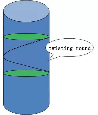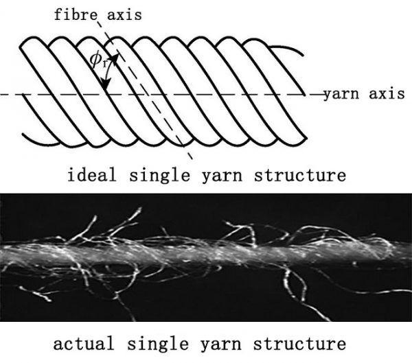 Bükümden sonra, dış lifler eğik bir spiral içinde geri bükülür, lifler bükülür ve deforme olur ve iplikler bir arada tutulur, aşağıdaki şemada gösterildiği gibi liflerin toplu yapısal formu ve mekanik ve fiziksel özellikleri değiştirilir.